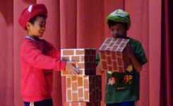 小学部児童による「ユニバーサル ステージ at TOHIGASHI」では、2人組で発表しました。マリオとルイージペアはゲームの世界…