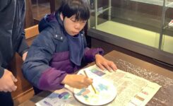 富山市民俗民芸村では、絵の具と筆を使って湯呑の絵付け体験をしたり、展示されている作品を鑑賞したりしました。富山地鉄ゴールデンボウルでは、ボウリングを体験しました。小矢部市の福祉作業所あけぼの第二では、仕事の様子の見学やタオル畳み体験をしたり、働いておられる方に事前に考えた質問をしたりしました。北陸新幹線の利用も経験してきました。多くのことを体験し、たくさんの思い出ができました。実りある二日間となりました。